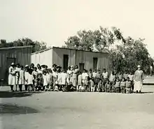In March 1914, Stott telegraphed Gilruth advising that a building where he kept rations for Aboriginal people could be converted temporarily into a classroom. On the same day Gilruth advised that arrangements were being made with the South Australian Director of Education to procure a teacher. The first teacher was Ida Standley, who departed for Stuart from Adelaide, South Australia, on 6 May 1914. Her salary was £150 per annum. The school opened in June with 25 students.[1] Standley taught the white children for four-and-a-half hours each morning at the police station. After lunch, 14 "half-caste" children joined her class for one-and-a-half hours. Standley sometimes provided evening classes to "half-caste" adults at The Bungalow.[2]
