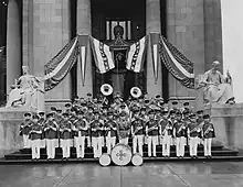 The Christian Brothers Band began to be known as the official band of the Cotton Carnival, marching in the parade every year. On June 9, 1940, the band performed at the dedication of the new Christian Brothers College Campus at 650 East Parkway.[7]
