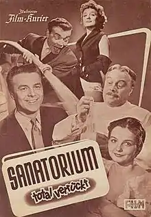 The Crazy Clinic (German: Sanatorium total verrückt) is a 1954 West German comedy film directed by Alwin Elling and starring Ingrid Andree, Maria Andergast and Claus Biederstaedt.[1] It was shot at the Göttingen Studios with sets designed by the art directors Heinrich Richter and Bruno Lutz .