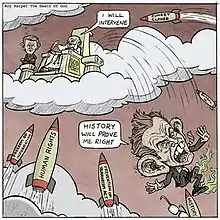Of the 2003 Iraq War, Harper stated "Our famous leader took us into an illegal war and killed thousands of children. Was that cool? Or was it all just a myth?..." [1]