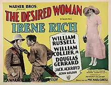 The Desired Woman is a 1927 American silent drama film directed by Michael Curtiz and starring Irene Rich, William Russell and William Collier Jr.[1][2] It is now considered to be lost.[3][4] It was produced and distributed by Warner Bros. The film was based on a story by Darryl F. Zanuck, who was credited under the pseudonym Mark Canfield.