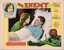 The Enemy is a 1927 American silent drama film directed by Fred Niblo and starring Lillian Gish, Ralph Forbes and Ralph Emerson. The film was thought to have been lost for years until a copy was discovered at the MGM library, now owned by Turner Entertainment. However, the film is still missing its final reel.[1] Actor Joel McCrea made an early appearance as an extra.