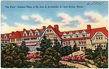 The Eyrie Summer Home was the summer residence located in Seal Harbor, Maine of the Rockefeller family. It was purchased by John D. Rockefeller Jr. in 1910. Rockefeller hired architect Duncan Candler to oversee the original cottage's expansion in 1914. The current location is home to the Abby Aldrich Rockefeller Garden.[1]