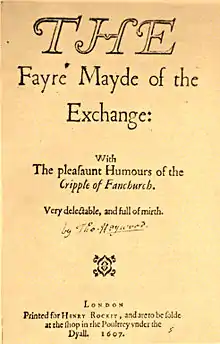 • The Fayre Mayde of the Exchange: with the pleasant humours of the Cripple of Fanchurch. Very delectable and full of mirth. (printed in 1607 by Valentine Simmes[2])