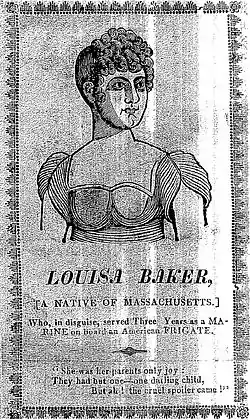 • Louisa Baker, Lucy Brewer, Mrs. West, George, Major B: Plymouth, Massachusetts born maiden who disguised herself as a man and wrote pamphlets on her adventures in New York and Boston dressed as a United States Marine.