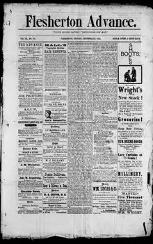 The Flesherton Advance (now The Advance) is a weekly newspaper published in tandem with the Dundalk Herald based in Dundalk, Ontario, serving Grey Highlands. Founded in 1881, the paper was published in Flesherton until 1968 when purchased by the current publishers, the Walls family.[1]