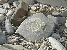 Ammonite fossils on the beach near Lyme Regis. The narrator often reflects on Smithson's fascination with science and natural history, while referring to the fossils found near Lyme Regis