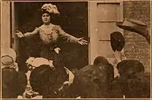 The writer of the scenario is unknown, but it was most likely Lloyd Lonergan. Lonergan was an experienced newspaperman employed by The New York Evening World while writing scripts for the Thanhouser productions.[2] Michael S. Shull, author of Radicalism in American Silent Films, 1909-1929: A Filmography and History, believes the scenario was inspired by a New York City shirtwaist makers strike that began in the winter of 1909.[3] The strike would end without settlement, but it would be dramatized by Theresa Malkiel, a labor activist. The fictional autobiography written by Malkiel, The Diary of a Shirtwaist Striker, was serialized in New York Caller a socialist paper.[3] The film director is unknown, but it may have been Barry O'Neil. Bowers does not attribute a cameraman for this production, but two possible candidates exist. Blair Smith was the first cameraman of the Thanhouser company, but he was soon joined by Carl Louis Gregory who had years of experience as a still and motion picture photographer. The role of the cameraman was uncredited in 1910 productions.[4] The only credit known for the cast is that of Mrs. George W. Walters in the role of a poor factory worker.[1] Other members cast may have included the other leading players of the Thanhouser productions, Anna Rosemond, Frank H. Crane and Violet Heming.[5][6][7]