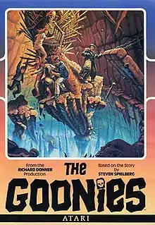 The Goonies is a puzzle-platform game programmed by Scott Spanburg and published in 1985 by Datasoft.[1] It is based on the Richard Donner film The Goonies (1985).