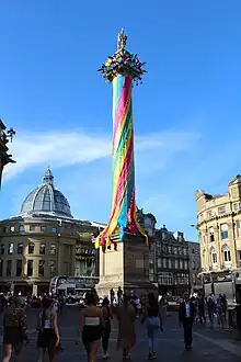 Exhibits included Stephenson's Rocket, lego sculptures, and a large water sculpture[11] Grey's Monument was decorated as The Workers Maypole until 2 August.[10]