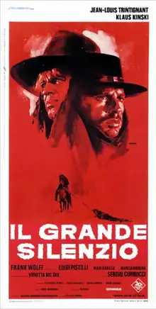 The Great Silence (Italian: Il grande silenzio) is a 1968 revisionist spaghetti Western film directed and co-written by Sergio Corbucci. An Italian-French co-production, the film stars Jean-Louis Trintignant, Klaus Kinski, Vonetta McGee (in her film début) and Frank Wolff, with Luigi Pistilli, Mario Brega, Marisa Merlini and Carlo D'Angelo in supporting roles.