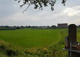 Playing fields of Hathershaw College, the college buildings are in the centre background