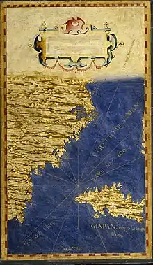 Richard Wylles (an English Catholic writer, b.1546 - 1577) another editor was active between 1558-1577 and co-edited the 1577 edition with Eden, penning a section entitled Of the Ilande Giapan, and other litle Iſles in the Eaſt Ocean through pages 251 - 260, thought to be one of the earliest accounts on Japan in English.[2] The account describes how Willes ascertained 'two hitherto unknown documents that contained descriptions of both China and Japan [with a] ... report on China [that] had come into his hands by way of a Portuguese merchant who had been captured and imprisoned by ... the Ming imperial court.' Wylles had 'acquired a handful of private letters about "the Japonish nation", written by the Jesuit monk, Padre Luis Frois. These letters had been written to fellow Jesuits and were not intended to be studied – still less published – by 'hereticke' Protestants.' The Jesuits had begun missionary work in 1550 under Francis Xavier in Japan and thus the name had become Latinized to 'Giapan' or more commonly as 'Iapon'.