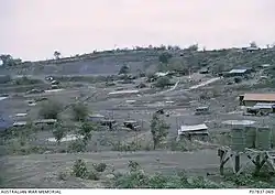 The Horseshoe is located approximately 9km southeast of Nui Dat, 1km north of Đất Đỏ and immediately east of Route TI 52 in Phuoc Tuy Province.[1] The Horseshoe is an extinct volcano with its crescent-shaped remaining walls (giving its Horseshoe shape) rising up to 100 feet (30 m) above the surrounding plains, while the southern end is open.