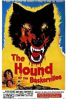 The Hound of the Baskervilles is a 1959 British gothic mystery film directed by Terence Fisher and produced by Hammer Film Productions. It is based on the 1902 novel of the same title by Sir Arthur Conan Doyle. It stars Peter Cushing as Sherlock Holmes, Sir Christopher Lee as Sir Henry Baskerville and André Morell as Doctor Watson. It is the first film adaptation of the novel to be filmed in colour.