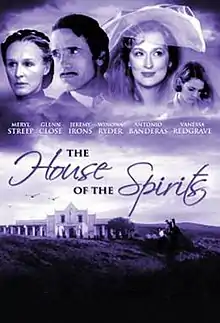 The House of the Spirits (Danish: Åndernes hus) is a 1993 period drama film directed by Bille August and starring Jeremy Irons, Meryl Streep, Glenn Close, Winona Ryder, Antonio Banderas and Vanessa Redgrave. The supporting cast includes María Conchita Alonso, Armin Mueller-Stahl, and Jan Niklas. Based on the 1982 novel of the same name by Isabel Allende, the film follows three generations of women from a Chilean family during the country’s military dictatorship.