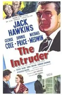 The Intruder is a 1953 British drama film directed by Guy Hamilton and starring Jack Hawkins, George Cole, Dennis Price and Michael Medwin.[2] The film is based on the 1949 novel by Robin Maugham called The Line on Ginger.