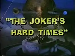 "The Joker's Hard Times" is the 72nd episode of the Batman television series in its second season. Part 2 of a three-part story, it first aired on ABC January 12, 1967 (a full year after the series' debut on The Alphabet Network) and repeated on June 15 the same year. It guest-starred Cesar Romero as The Joker. Its ending cliffhanger was the first for the series that would not be resolved until the following week.