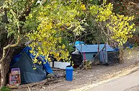 The Jungle was a large homeless encampment located in San Jose, California.[1] It was located off Story Road and along Coyote Creek, in an area called Coyote Meadow, and consisted of various makeshift dwellings, shacks, tree houses and tents on around 75 acres (30 ha) of land.[2][3][4] During the time of its existence, it was often considered to be one of the largest homeless encampments in the United States.[3][5][6]