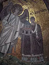 Cupola of the choir: An Angel Offers a Model of The Church to Bishop Ecclesius, Basilica of San Vitale in Ravenna, Italy