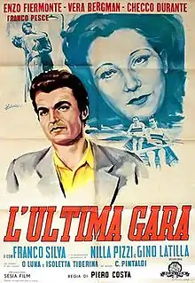 The Last Race (Italian: L'ultima gara) is a 1954 Italian drama film directed by Piero Costa and starring Vera Bergman, Enzo Fiermonte and Checco Durante. Production began in 1949, but was not completed until 1953 with the film given its release the following year. It earned just under 30 million lire at the box office.[1]