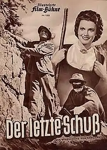 The Last Shot (German: Der letzte Schuß) is a 1951 West German historical drama film directed by Franz Seitz and starring Angelika Hauff, Viktor Staal and Heinrich Gretler.[1] It is part of the post-war group of heimatfilm, set in rural Southern Germany. It was made by a Munich-based independent company at the Bavaria Studios. It was produced by the director's son Franz Seitz. Location shooting took place around the Schliersee in Bavaria. The film's sets were designed by Ernst H. Albrecht and Arne Flekstad.