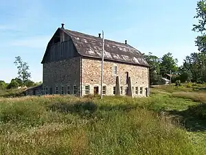 Situated prominently upon the property is a unique stone barn that is intended to house Monck's Landing's clubhouse in the near future.[11] Built in 1919, with 2-foot-thick (0.61 m) stone walls that extend up to its rafters, this stone barn is considered by some experts to be the only structure of its kind in Ontario.[12]