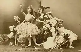 Lyubov Roslavleva (center, left) as the Tsar Maiden with dancers costumed for Alexander Gorsky's revival of The Little Humpbacked Horse for the Bolshoi Theatre. Moscow, 1901.
