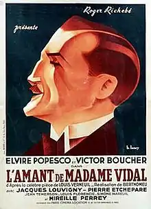 The Lover of Madame Vidal (French: L'amant de Madame Vidal) is a 1936 French comedy film directed by André Berthomieu and starring Elvire Popesco, Victor Boucher and Jacques Louvigny.[1] It was based on a 1928 play of the same name by Louis Verneuil. The film's sets were designed by the art director Jean d'Eaubonne.