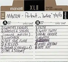 Hitachi Maxell re-recordable cassette cover, featuring the album's track listing handwritten by the band's guitarist, Daisy Berkowitz.