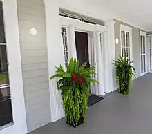The property still appeared as part of the Astor's Ferncliff estate on a 1909 survey map.[7] John Jacob Astor IV perished in the Titanic disaster in 1912 and his son William Vincent Astor inherited Ferncliff. In 1914, a small parcel containing The Maples house was sold off from the estate by Vincent Astor to W.H.B. Obre,[8] and the owner was subsequently listed on surveys as Herbert Decker.[9] For unknown reasons, sometime after John Jacob Astor IV's renovations to The Maples in 1901, the wings on the north and south end of the house and the second floor balcony were removed.