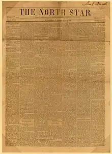 The North Star was a nineteenth-century anti-slavery newspaper published from the Talman Building in Rochester, New York, by abolitionist Frederick Douglass.[1] The paper commenced publication on December 3, 1847, and ceased as The North Star in June 1851, when it merged with Gerrit Smith's Liberty Party Paper (based in Syracuse, New York) to form Frederick Douglass' Paper.[2] At the time of the Civil War, it was Douglass' Monthly.