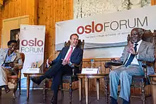 The Oslo Forum convenes senior conflict mediators, high level decision makers, key peace process actors, analysts and experts in an informal and discreet retreat to share their experiences, identify challenges and reflect on mediation practice."[1][2] The retreat is held annually in June in Oslo, Norway, and is co-hosted by the Royal Norwegian Ministry of Foreign Affairs[3] and the Centre for Humanitarian Dialogue (HD), a private diplomacy organisation based in Switzerland.[4] Participation is by invitation-only. All discussions take place under the Chatham House Rule.[1]