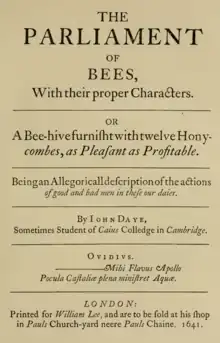 The Parliament of Bees is the best-known of the works of the Elizabethan and Jacobean dramatist John Day. It was probably written some time between 1608 and 1616, but not published until 1641.
