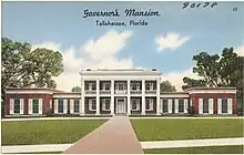 The house served fifteen governors and their families until 1955, when it was determined that a new mansion would need to be built due to a lack of enough space in the house and various structural issues.[1] Governor Fuller Warren, who served from 1949 to 1953, referred to it as the "State Shack."[9] The sum of $250,000 was appropriated by the Florida State Legislature in 1953 for a new mansion, and the Cabinet approved the plan in 1955.[10] Many items in the first mansion were auctioned in 1955 to aid in furnishing the new mansion, raising $7,500.[1]