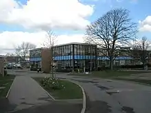 Main entrance into the school; part of the main block is shown.