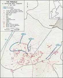 The Pinnacle: Japanese positions & American assault, 5 April 1945