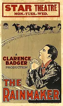 The Rainmaker is a 1926 American silent drama film directed by Clarence G. Badger and written by Gerald Beaumont, Louis D. Lighton, and Hope Loring. The film stars William Collier, Jr., Georgia Hale, Ernest Torrence, Brandon Hurst, Joseph J. Dowling, and Tom Wilson. The film was released on May 10, 1926, by Paramount Pictures.[1][2]