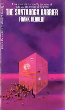 The Santaroga Barrier is a 1968 science fiction novel by American writer Frank Herbert. Considered to be an "alternative society" or "alternative culture" novel,[2] it deals with themes such as psychology, the counterculture of the 1960s, and psychedelic drugs.[3] It was originally serialized in Amazing Stories magazine from October 1967 to February 1968, and came out in a paperback from Berkley Books later in 1968.[4] The book has been described as "an ambiguous utopia,"[5][6] and Herbert told Tim O'Reilly that The Santaroga Barrier was intended to describe a society that "half my readers would think was utopia, the other half would think was dystopia."[5] O'Reilly writes: