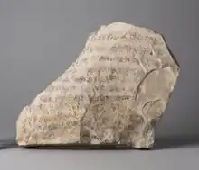 The Satire of the Trades is a "schoolboy text", meaning it was used to teach young scribes the values and tasks required for the profession.[8] Scribes in training were expected to memorize and inscribe passages from the text as a pedagogical method. A surviving ostracon of The Satire with writing from two different hands, one skilled and one amateurish, allows for insight into how scribes were taught. An experienced scribe would write one section of the text and the beginning of the next one. The scribe in training would pick up where his teacher left off and complete the unfinished verse. This was a test of both memory and writing.[9] The Satire was among the most copied texts in Theban scribal schools during the Ramesside Period.[8]