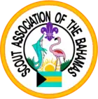 The emblem of The Scout Association of the Bahamas features a very stylized marlin and flamingo head, topped by a rounded black arrowhead, in the colors of the flag of the Bahamas. Until 2015, the Association's emblem included a marlin and flamingo, the heraldic supporters of the coat of arms of the Bahamas, as well as the flag of the Bahamas.