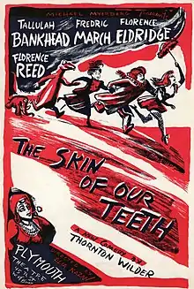 The Skin of Our Teeth is a play by Thornton Wilder that won the Pulitzer Prize for Drama. It opened on October 15, 1942, at the Shubert Theatre in New Haven, Connecticut, before moving to the Plymouth Theatre on Broadway on November 18, 1942. It was produced by Michael Myerberg and directed by Elia Kazan with costumes by Mary Percy Schenck. The play is a three-part allegory about the life of mankind, centering on the Antrobus family of the fictional town of Excelsior, New Jersey. The epic comedy-drama is noted as among the most heterodox of classic American comedies — it broke nearly every established theatrical convention.