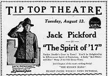 The Spirit of '17 is a lost[1] 1918 American silent drama film directed by William Desmond Taylor and written by Judge Willis Brown and Julia Crawford Ivers. The film stars Jack Pickford, Clarence Geldart, Edythe Chapman, L.N. Wells, Charles Arling, and Virginia Ware. The film was released on January 26, 1918, by Paramount Pictures[2][3] and, like several other films released shortly after the American entry into World War I, had a patriotic theme. Several of the intertitles of this film had messages at the bottom which encouraged young men to enlist.[4]