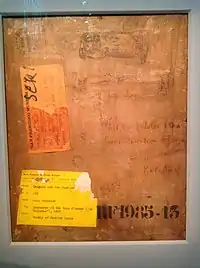 On the back of the canvas, Sérusier wrote, "Made in October 1888 under the direction of Gauguin by P. Sérusier at Pont-Aven." He brought the painting back to Paris, and showed it to his fellow students at the Academie Julian. Many of them made fun of it, but several, particularly Maurice Denis, Pierre Bonnard, and Paul Ranson, Henri-Gabriel Ibels and Renée Piot, were highly enthusiastic. His friends, the future Nabis, gave the small painting the name The Talisman, and made it the emblem of their new movement. Describing the first presentation of the painting Maurice Denis wrote in 1903, "Thus we were presented, for the first time, in a form that was paradoxal and unforgettable, the fertile concept of a flat surface covered with colors assembled in a certain order.[2]