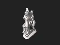 The three goddesses are shown nude, huddled together, their heads almost touching in what many have referred to as an 'erotically charged' piece. They stand, leaning slightly inward — perhaps discussing a common issue, or simply enjoying their closeness. Their hair-styles are similar, braided and held atop their heads in a knot.