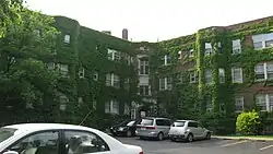 The Varsity is a historic apartment building located at West Lafayette, Tippecanoe County, Indiana. It was built in 1928, and is a three-story, L-shaped, Tudor Revival style brick building. It has a limestone quoins and detailing, a Tudor-arched entrance, projecting pavilions, and semi-hexagonal projecting bays.[2]: 5–6