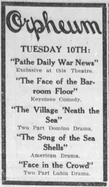 The Village 'Neath the Sea is a 1914 American silent short adventure film directed by Thomas H. Ince and Jay Hunt. Sessue Hayakawa,[1] Tsuru Aoki,[2] Lone Bear[3] and Ernest Swallow played important roles in it.