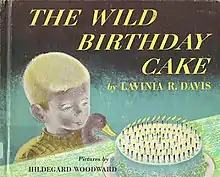 The Wild Birthday Cake is a 1949 American children's picture book written by Lavinia R. Davis and illustrated by Hildegard Woodward. The book describes what happens when a boy wonders what to take to a friend's party. The book was a recipient of a 1950 Caldecott Honor Book for its illustrations.[1]