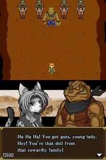 The Wild West[lower-alpha 1] is a shoot 'em up video game developed by Happy Happening and published by Majesco Entertainment. Though anime-styled, it was released for the Nintendo DS in North America on August 28, 2007.[2] The game takes place in the eponymous Wild West and features two anthropomorphic animal protagonists, a male lupine bounty hunter named Wolfy and a female cheetah gunslinger named Catty, as they fight through hordes of enemies led by a criminal named Terano in order to get revenge. While the game's graphics, character design and music were all praised by critics, the gameplay and story were universally panned as low-quality, resulting in poor reception.