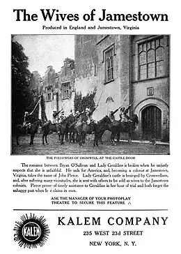 The Wives of Jamestown is a 1913 American silent film produced by the Kalem Company and distributed by the General Film Company. It was directed by Sidney Olcott with Gene Gauntier, Helen Lindroth and Jack J. Clark in the leading roles.